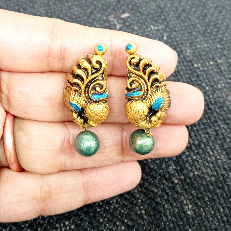 Home | Stud with Jumka | peacock Terracotta studs